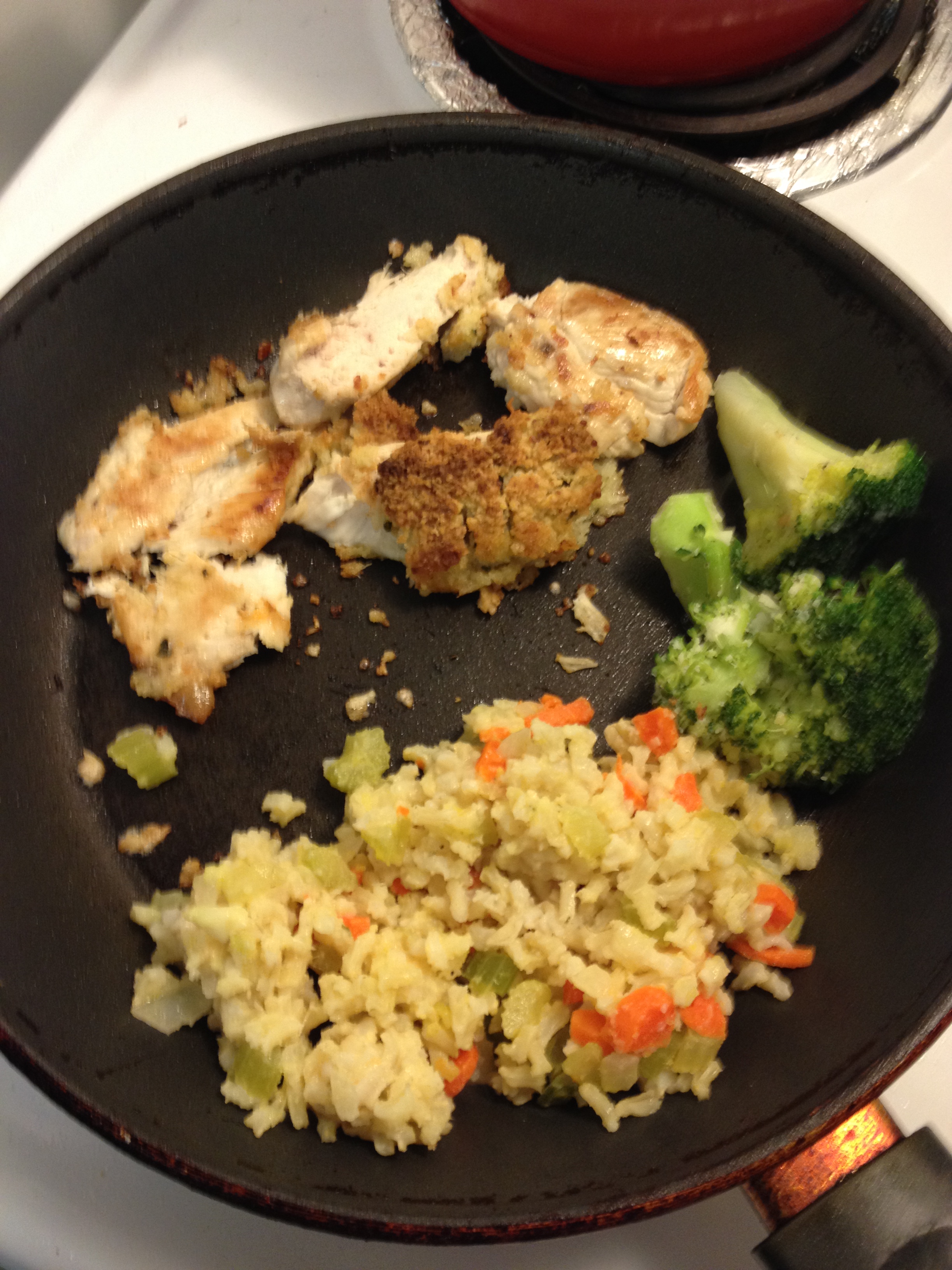 After a while it seemed like it was cooked, I tried a carrot and it was cooked all the way through so yay! I added some more spices cause it was a little bland, stirred it all together and let it sit off the heat for a bit. I was hoping the extra liquid would go away, there didn’t seem to be too much and I was worried if I left it cooking until all the liquid was gone I’d scorch the bottom. When I got myself a bowlful for dinner this is what it looked like…