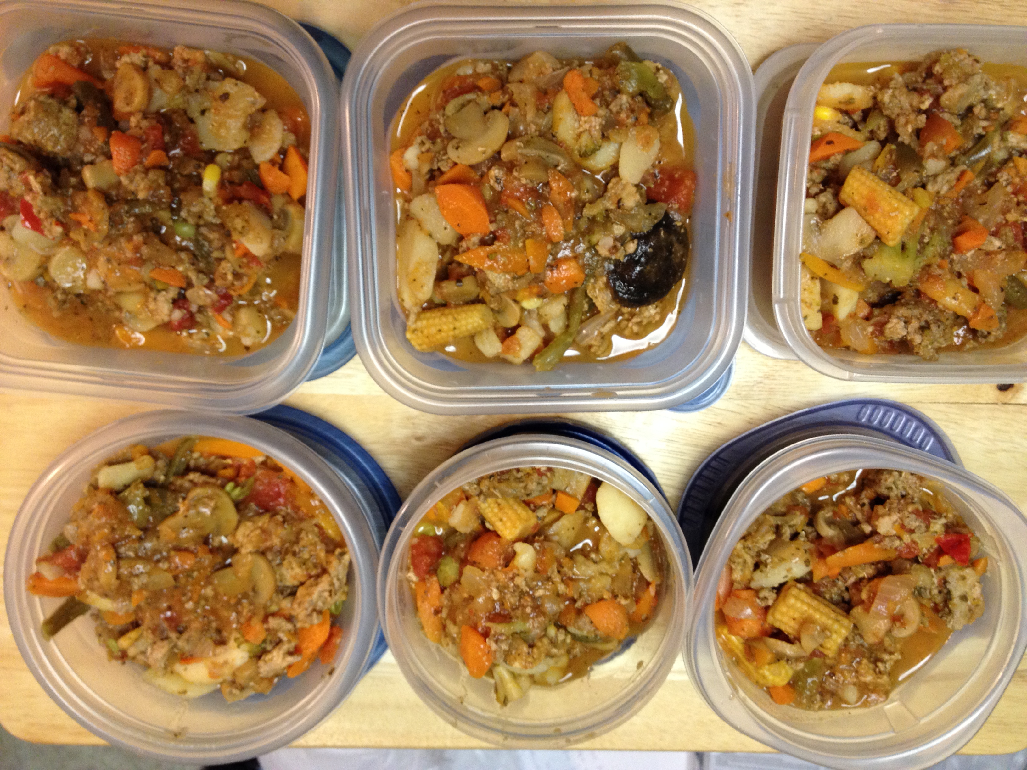 Sooooo, not like how mom used to make lol when I called and asked her what I did wrong she said I could have left it on the heat for longer and no I wouldn’t have overcooked it, go figure! lol She also said I could add cornstarch to help thicken it but by the time I called her it was sitting in individually portioned containers so that wasn’t happening. Also, I used a different broth from what she uses so that is probably why the colour is different from hers and well, there is always the fact that I have some turkey meat in there not just beef. All in all, I guess I can’t be surprised it doesn’t taste like mom’s stew cause I had too many differences from what she does, shrug.