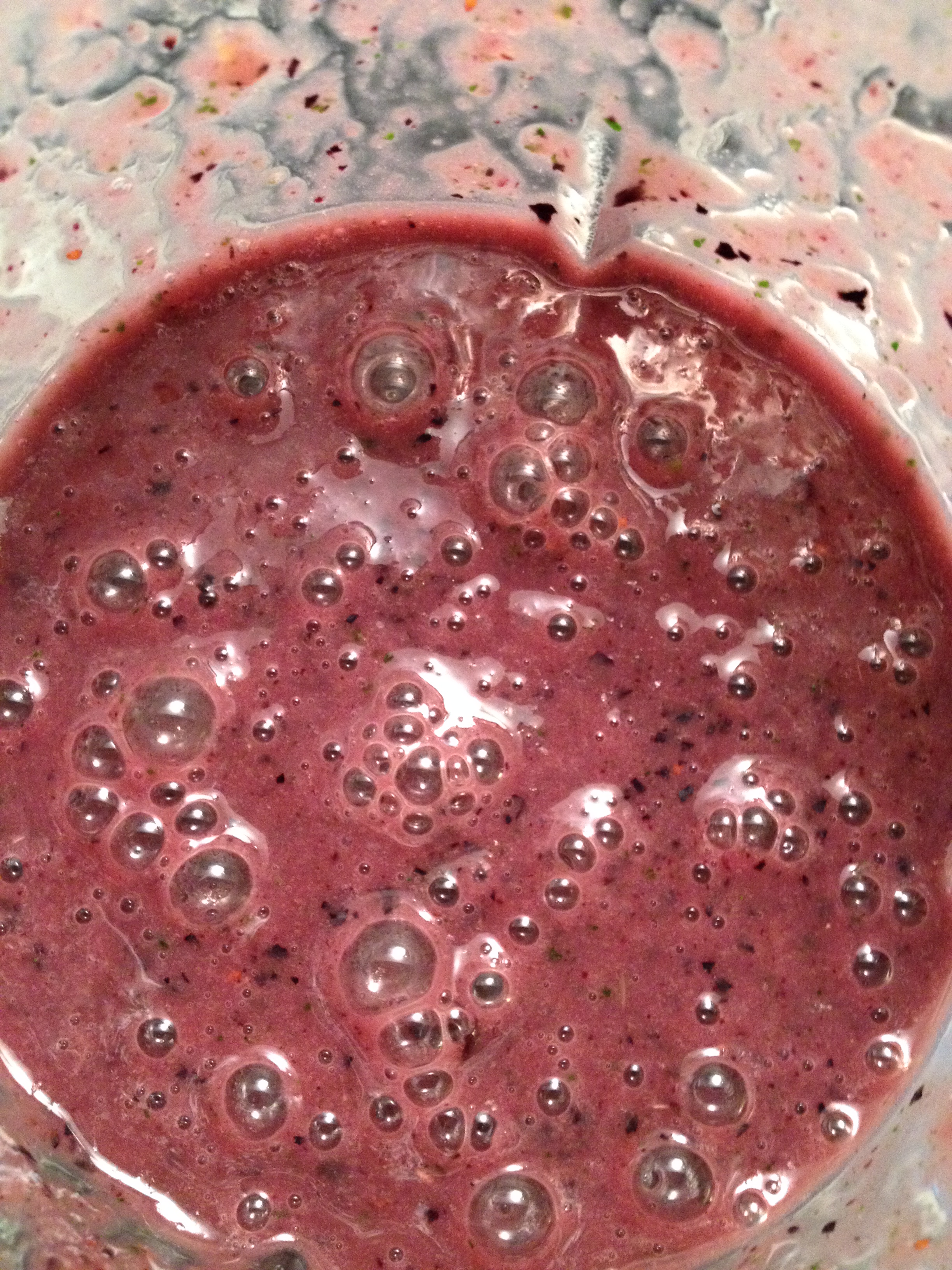 In case you can’t tell on your monitor the smoothie is purple. Purple! Not green. It has 2 cups of kale in it which you can’t tell from looking at it. It also has 2 oranges, one cup of blueberries, 2 bananas and 1 cup almond milk. It has a sickeningly sweet taste to it due to the oranges (I think) and lots of pulp. Never again will this smoothie be made by me, nuh-uh.