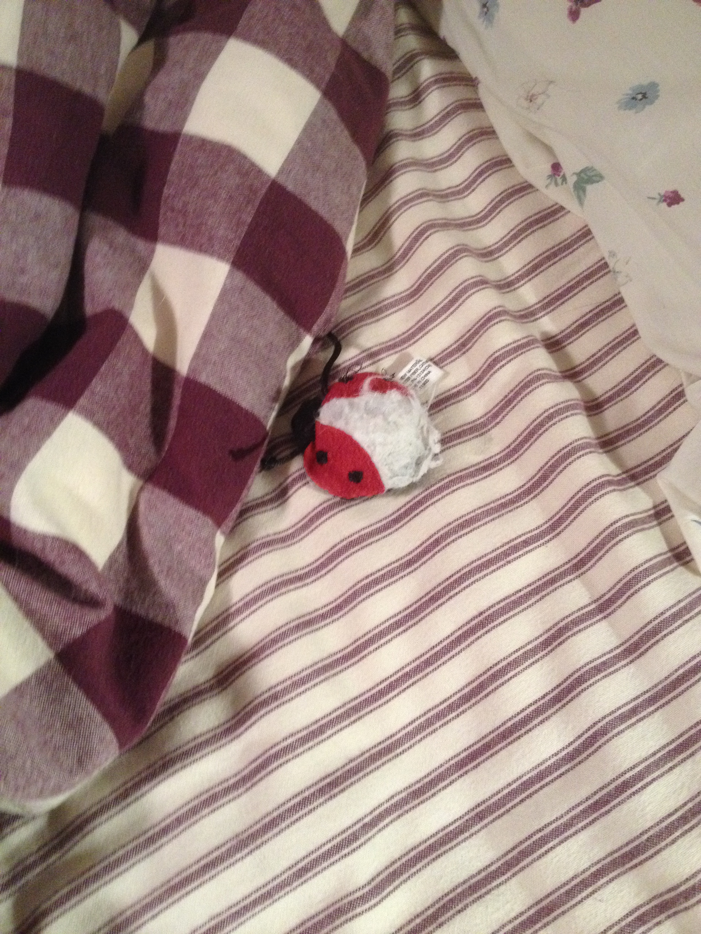 The cat is causing mayhem this evening. He is in an especially hyper mood and chasing a stuffed ladybug all over the place. Keep in mind the toy doesn’t move on its own, he is chasing it because he is flinging it places, it’s really cute to watch lol. He flung it in to the air and it landed in a cloth bag that has various items in it, he couldn’t get it out because the sides of the bag are too high for him to reach to the bottom so he knocked the bag over but then couldn’t get the toy out because one of the items was squishing it. Watching him try to find a solution to this problem made me appreciate his cunning even more then I already do…it also made me wonder why he hasn’t killed me in my sleep yet because I’m certain he could lol. While in pursuit of his ladybug he has knocked over countless things and created havoc in my tiny apartment. I don’t reeeeally mind cause he doesn’t do this all the time and hey, it’s his home too right? Why shouldn’t he be allowed to go a little nutso sometimes? What sucks is he doesn’t clean up after himself, the spoiled brat lol, which means tomorrow I shall be cleaning his mess. I know I know, I should be cleaning the mess up now but it is just papers etc and I’m busy watching Criminal Minds before I go to bed lol Sleep first! Cleaning some other time! That’s a good order don’t ya think? π