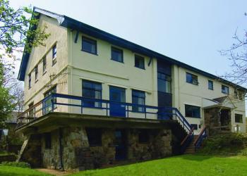 A fancy hotel covered in ivy.